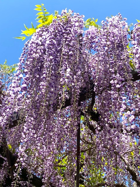 この時期は、境内にある樹齢350年の藤の花が見事に咲いています。