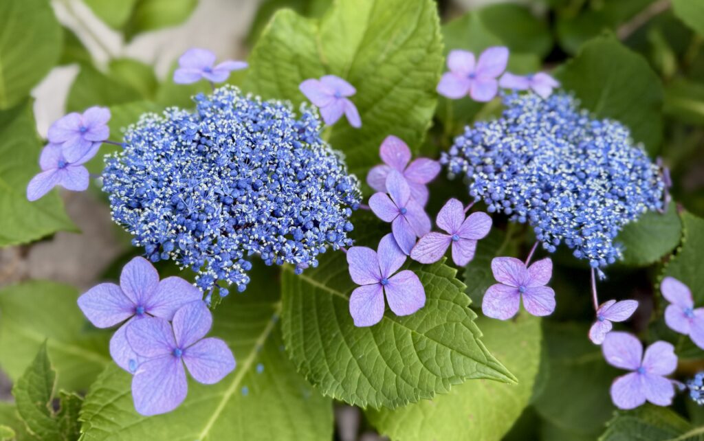 蕾から花開いたばかりの紫陽花もあれば、綺麗に花開いた紫陽花もあります。