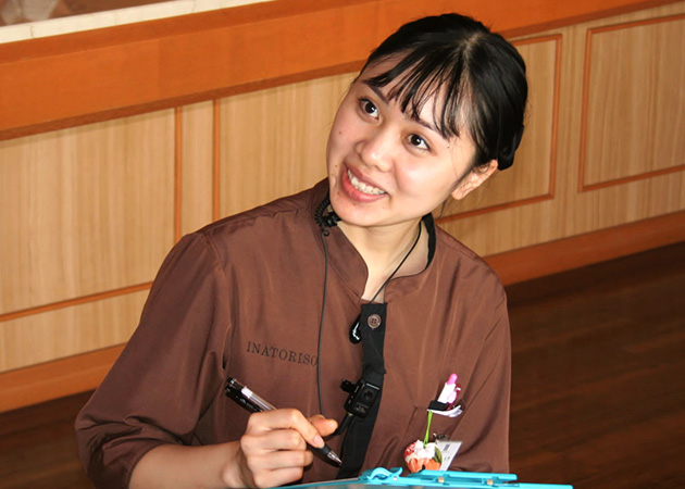 お客様のお出迎え・ご案内・館内や館外の説明・お食事のお仕度・お食事出しお見送りなど、客室アメニティの準備、客室の片付けなどの業務を通し、ご来館のお客様が快適に時間を過ごしていただく仕事です。