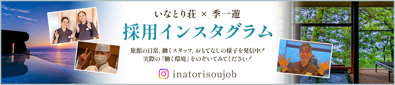 「あの旅館良かったね!又行きたいね。」とお客様に選ばれる旅館創り。そうでない旅館(企業)の永続的発展は考えられません。「お客様第一主義」を掲げる当社。社員は、つねにお客様に「感動してもらおう」「喜んでもらおう」「お客様のご旅行がより快適なものになるように」という思いを込めて行動できる方と一緒に働きたいと考えます。