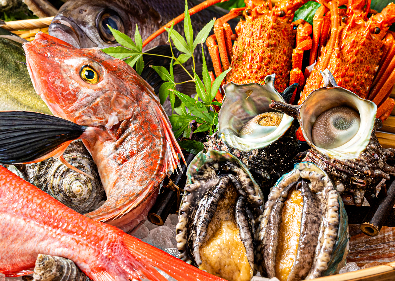 • 鮑・金目鯛・地魚・サーロインなど、海の恵みがずらり