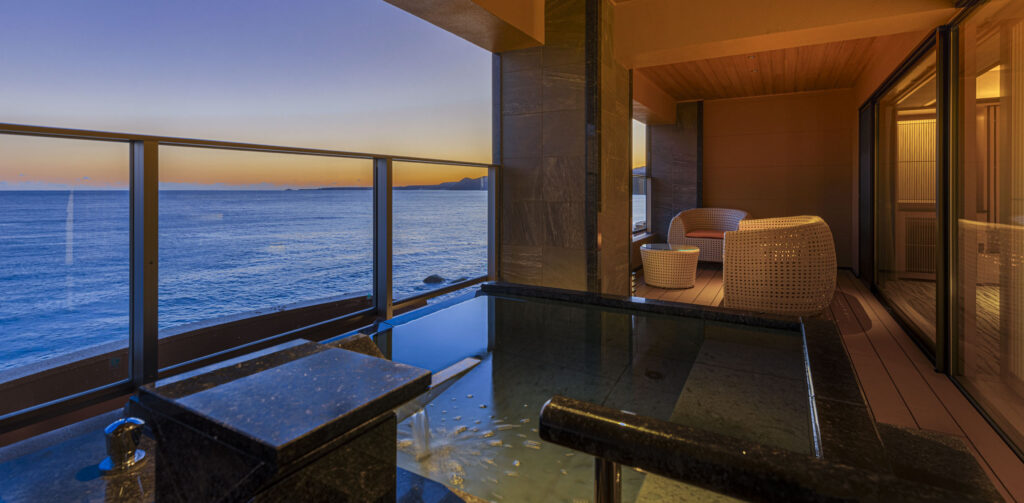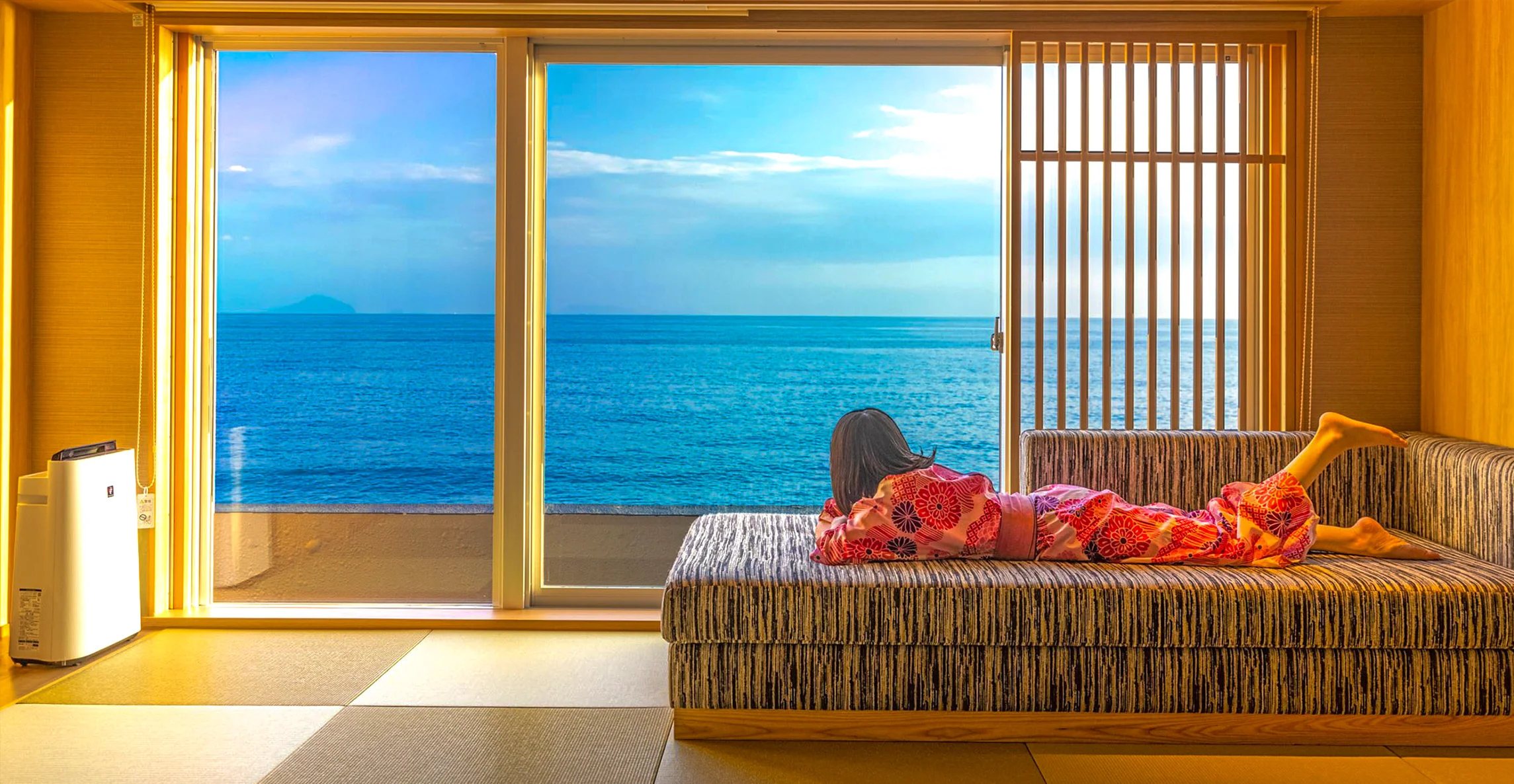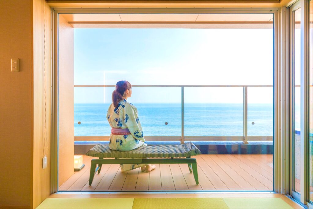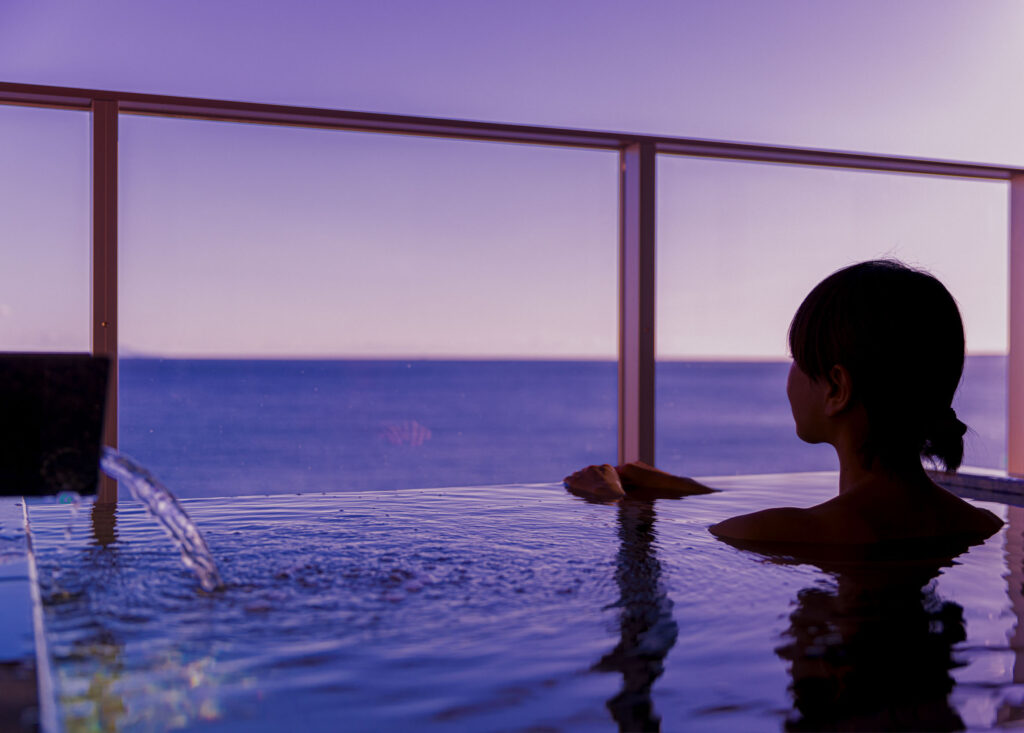 海を眺め、温泉に入り、ゆっくりと食事を楽しむ。